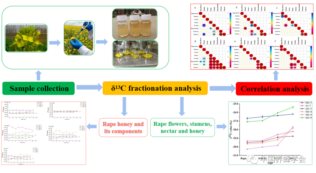 近日,中國(guó)農(nóng)業(yè)科學(xué)院蜜蜂研究所資源昆蟲(chóng)產(chǎn)品加工與功能評(píng)價(jià)團(tuán)隊(duì)研究揭示了穩(wěn)定碳同位素從油菜花到油菜蜜的分餾規(guī)律。相關(guān)研究成果發(fā)表在《食品化學(xué)(Food Chemistry)》上。同時(shí),該研究《一種鑒別蜂蜜產(chǎn)地來(lái)源的方法與應(yīng)用》獲得了國(guó)家發(fā)明專利。